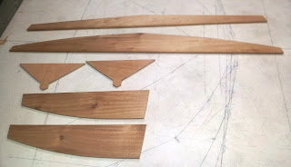 This last weekend I finished sanding the remaining main frame pieces to shape as well as the breasthook parts. I still have to make gussets for frames 0 and 1 as well as initial fitting of the frames together. That will come later.