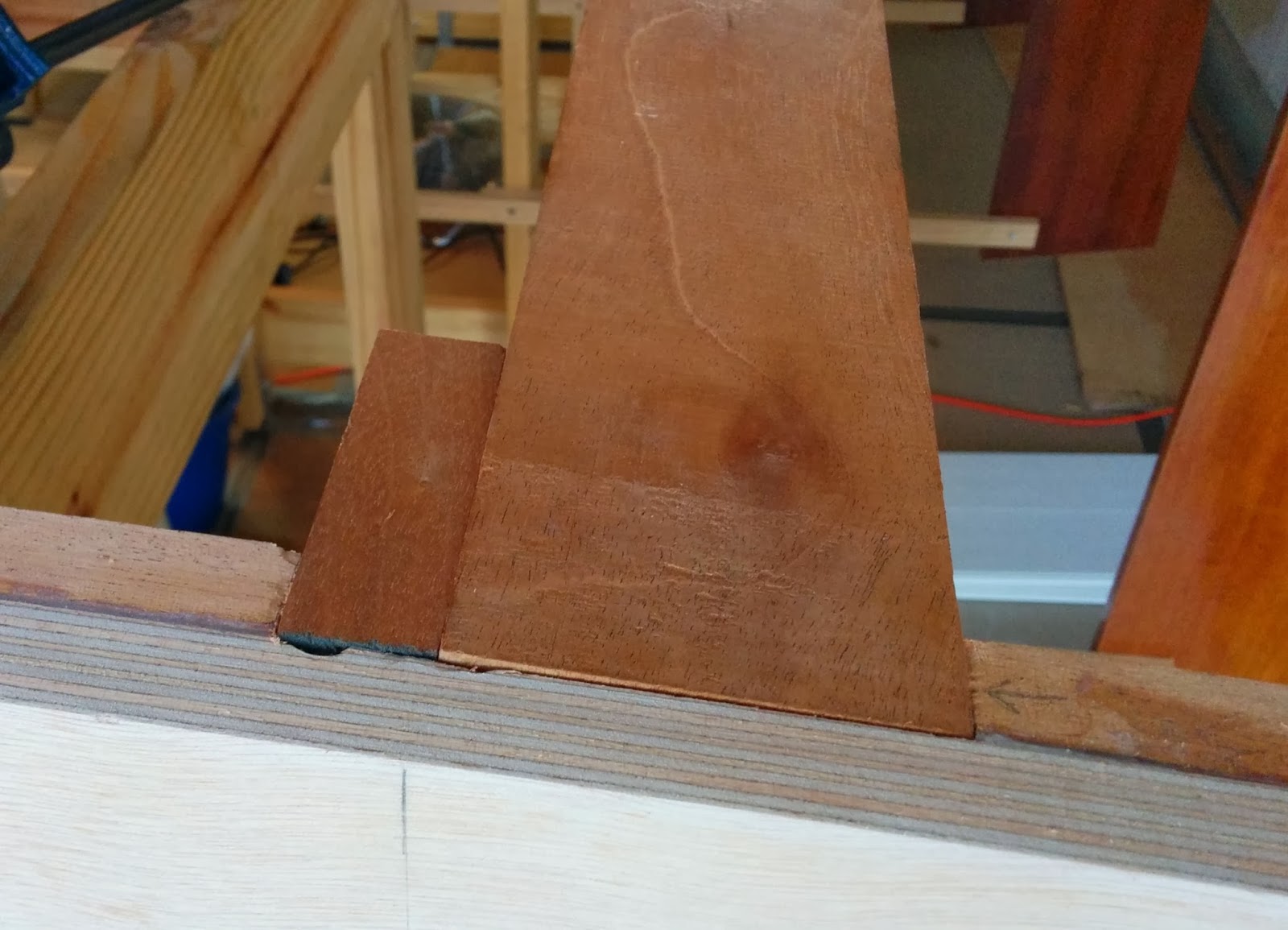 Frame 5 is the frame at the back of the picture and frame 6 is the forward frame. The stem butts into frame 5 and is glued and screwed into position. The picture doesnt show the floor timber but the screws will go through the back of the floor timber into the end of the stem. Additionally the entire assembly will be glued into the slot in the floor timber.