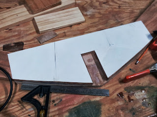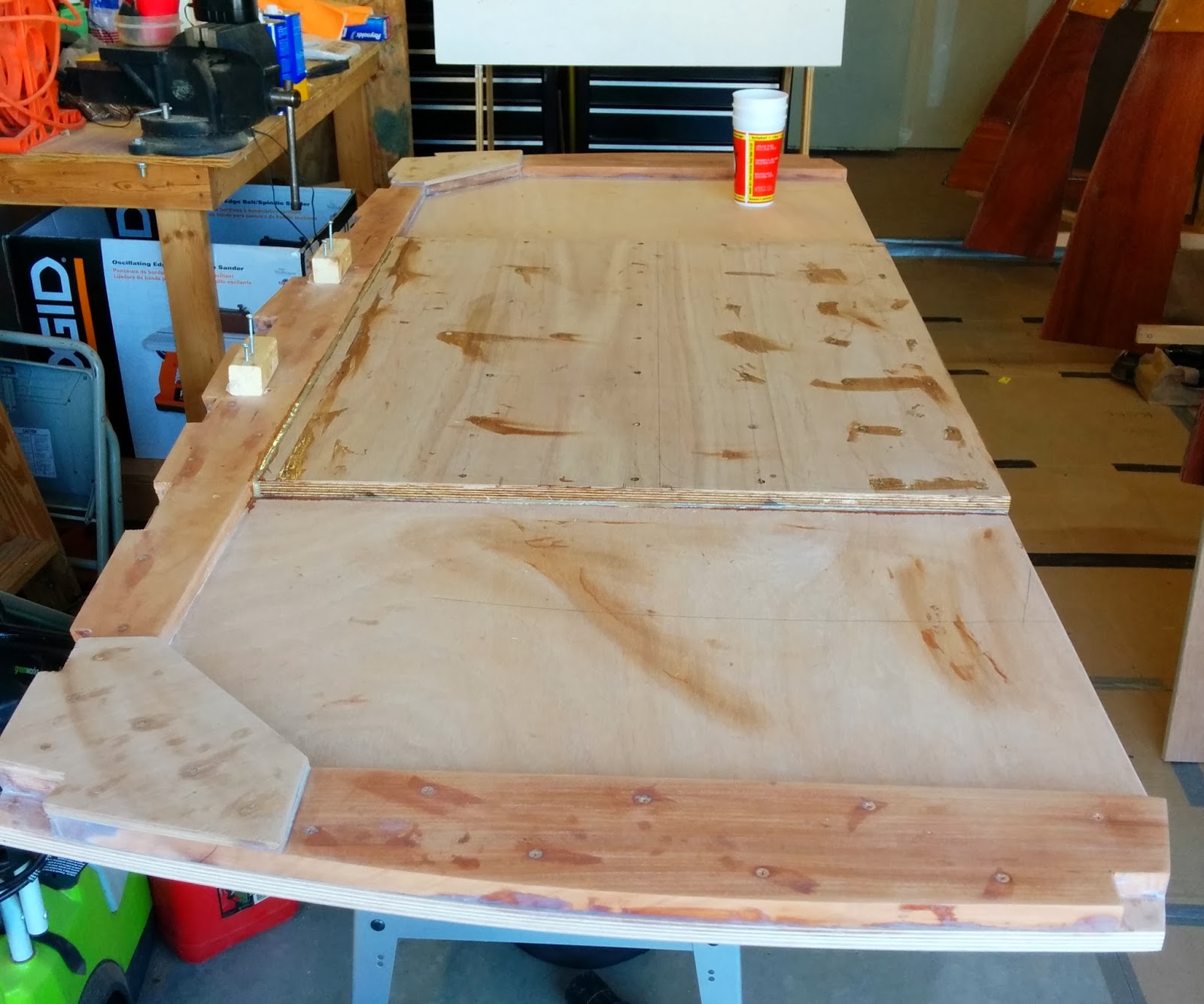 So as previously mentioned, because of the coming colder temps, it will be a few days before I can continue with the transom. But the next plan is to finish preparing the second motor board. This will be slightly different in that it will need to fit around the knee. So a portion of that board will be cut out for that purpose. I will show all of this next time.