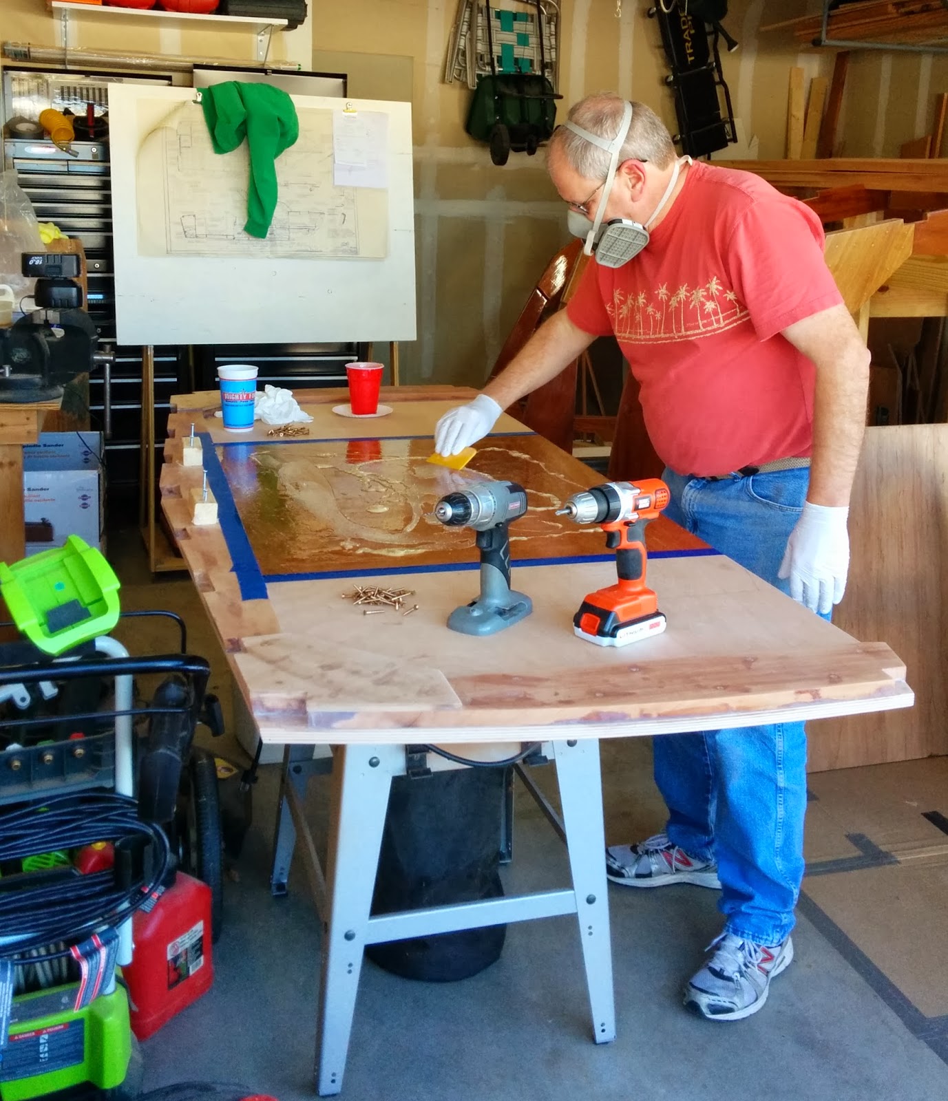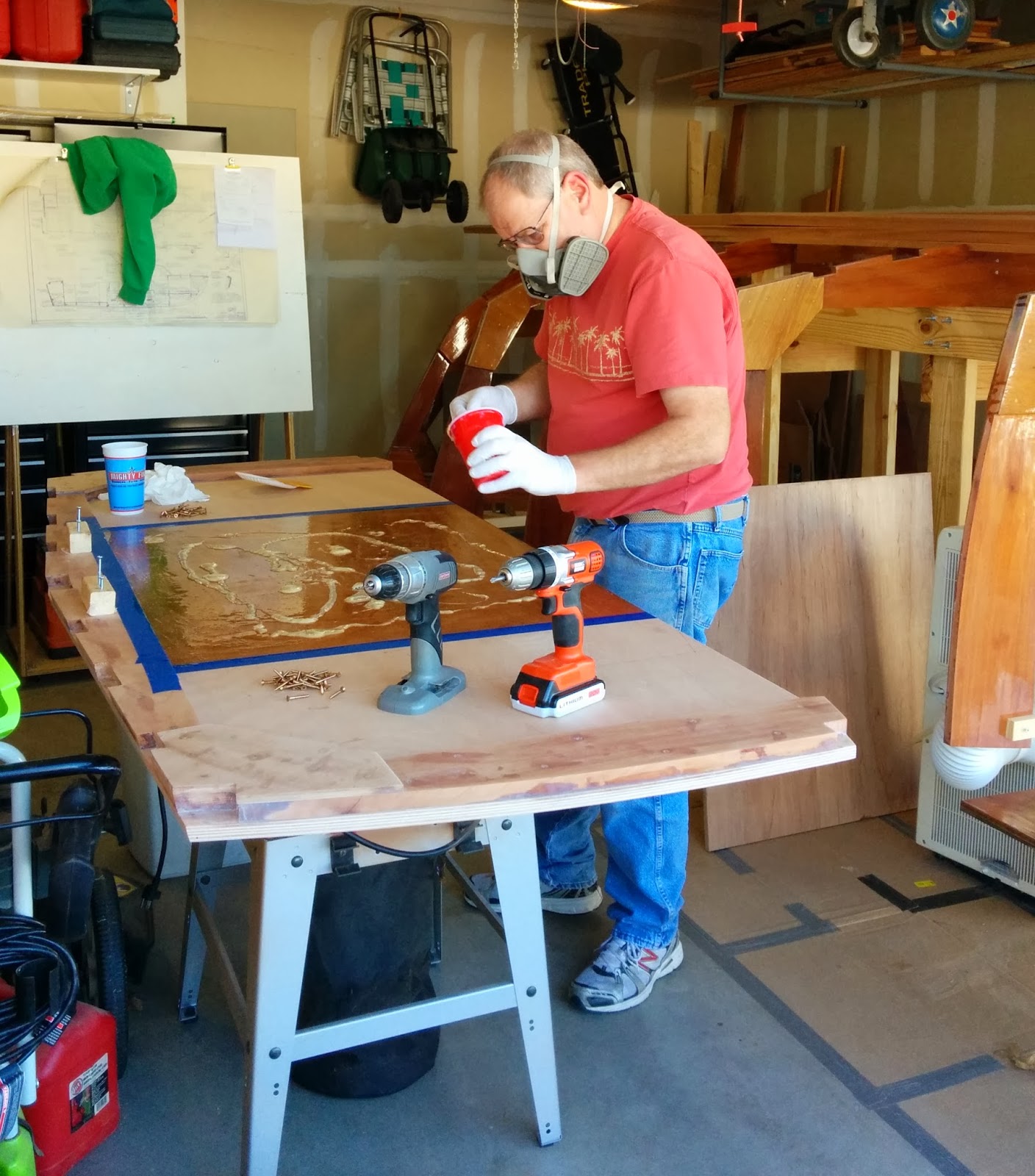 In this next photo, there is still insufficient thickened epoxy and I was mixing another cup .